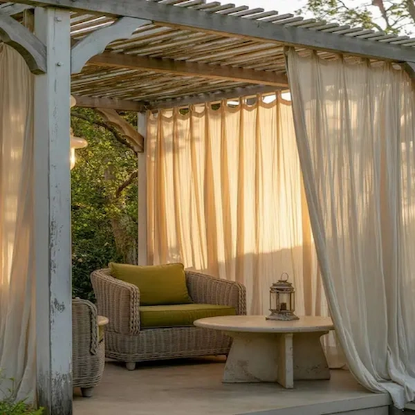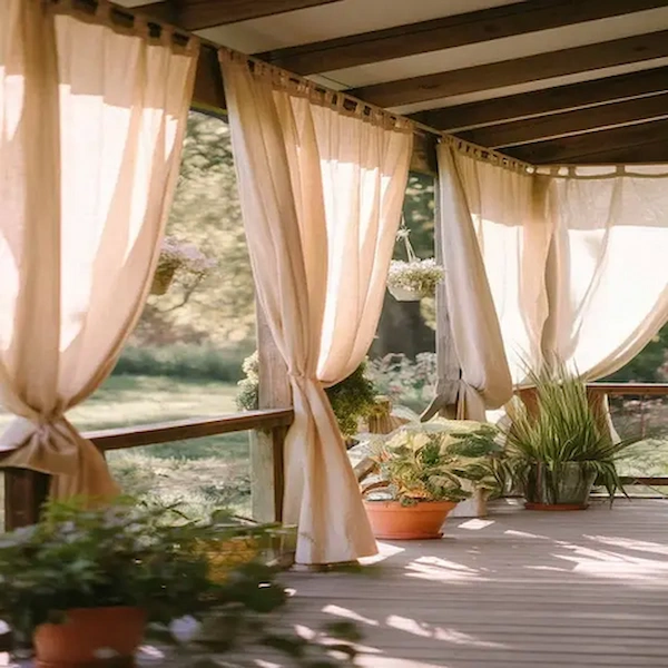 We offer both light-filtering curtains for an airy balcony vibe and waterproof heavy ones for more privacy and shade.