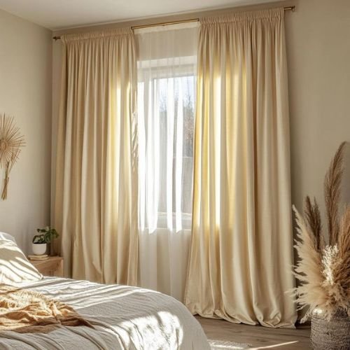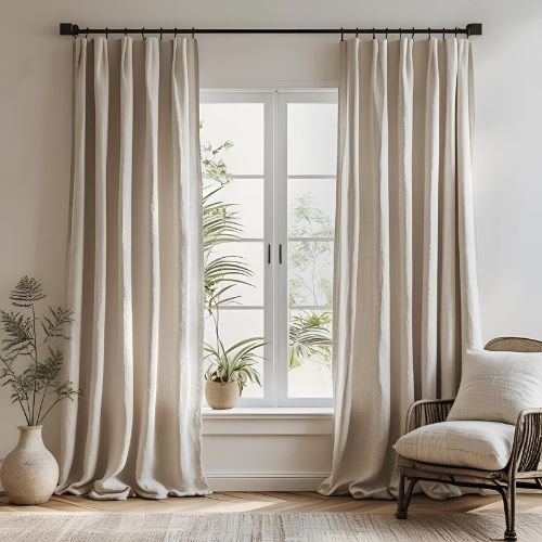 On-site visit to note window depth, arch or bay shapes, and where curtains meet blinds or shutters. We pick pleats and linings that keep linen from sagging or sticking in humidity.