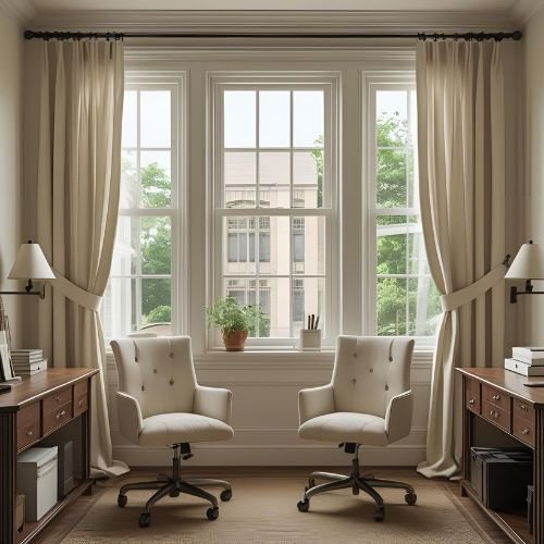 Your office environment should support productivity, comfort, and a clean professional look. We offer fully customized office curtain solutions where you can choose the ideal fabric, texture, thickness, and style based on your space requirements. Whether you need blackout for privacy, soft cotton for glare control, or blended fabrics for sound absorption, our made-to-measure office curtains enhance both function and appearance.