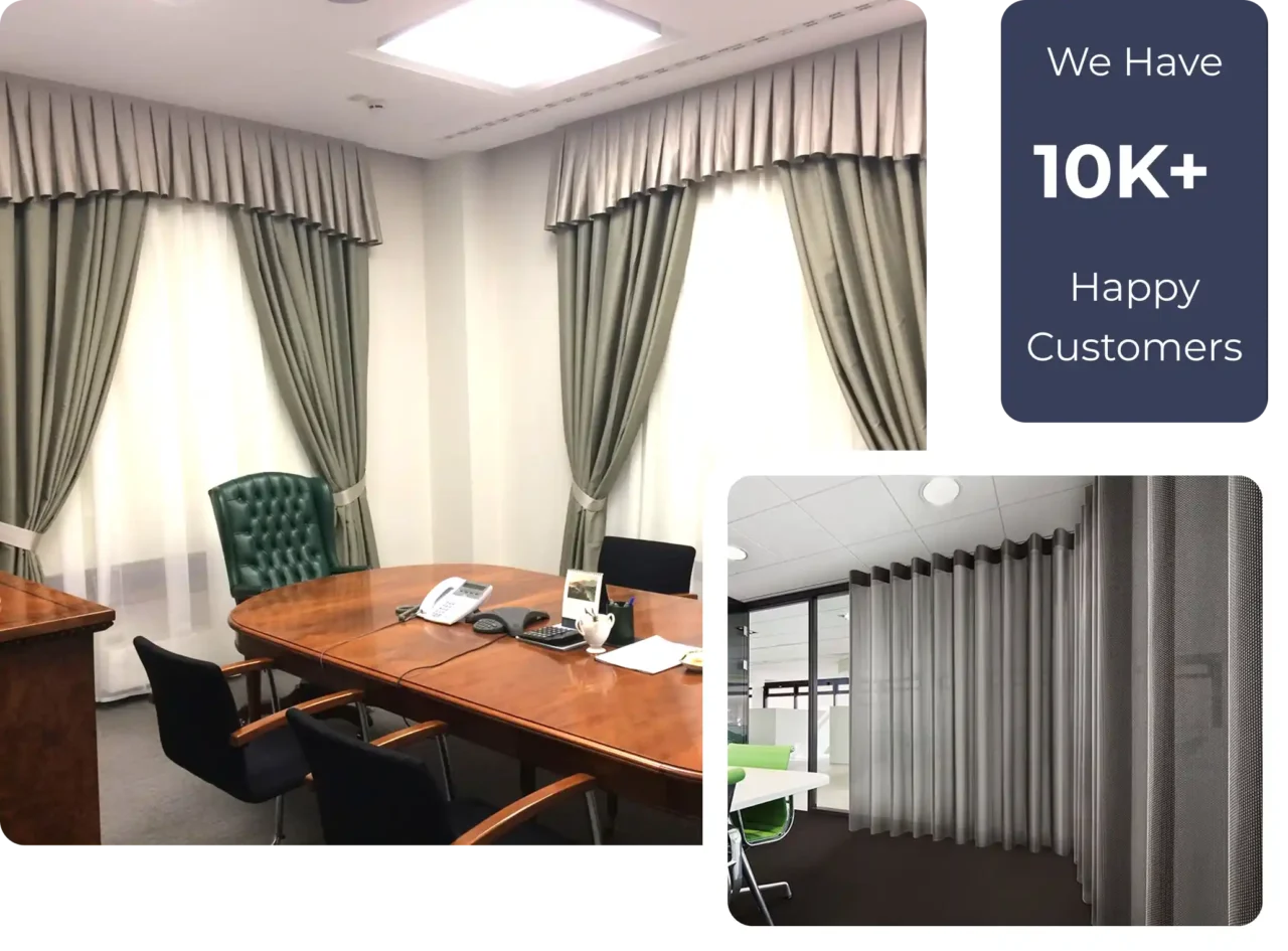 No two workspaces are the same, which is why we provide custom measurements and expert guidance to help you choose the ideal style. Whether you prefer blackout options, light-filtering drapes, or fire-retardant office curtains, every piece is made to match your office environment and daily operations.