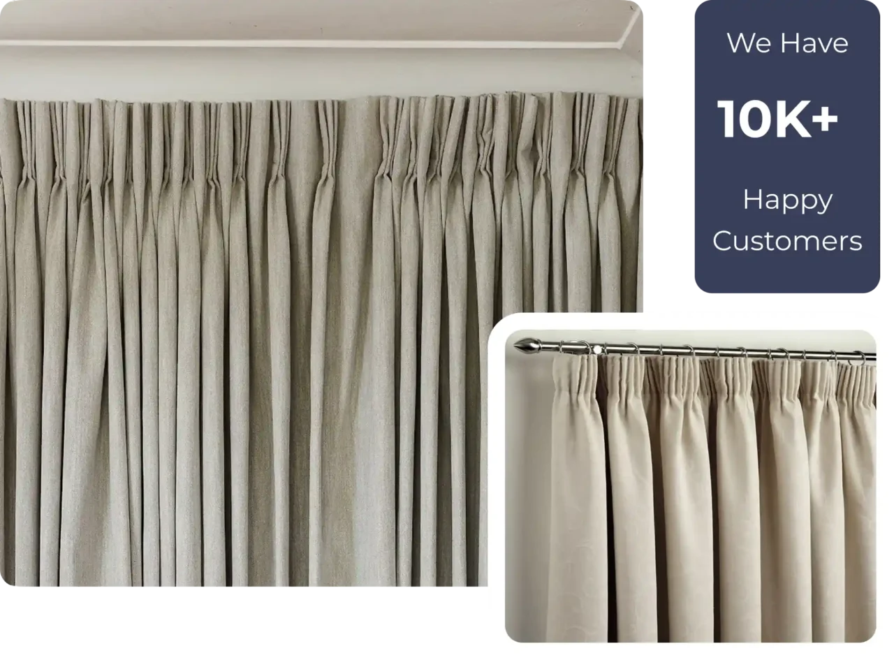 We adjust modern pencil pleat curtains to match your window style without pushing your budget too far. You choose the fabric, the pleat depth, and the look, and we shape everything so it fits the room’s design.