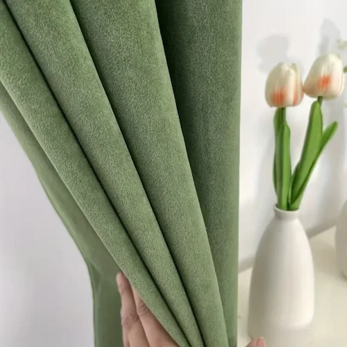 Refresh your interior with our vibrant grass green velvet curtains. These premium panels feature a lush, high-density pile that brings a natural, energetic feel to your modern home.