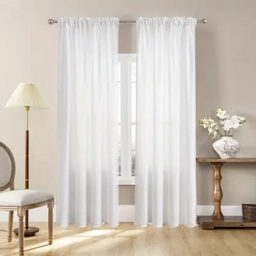 Choose these white semi sheer curtains for a crisp, timeless update. The integrated pocket allows for effortless hanging in your living room, bedroom, or quiet home office.
