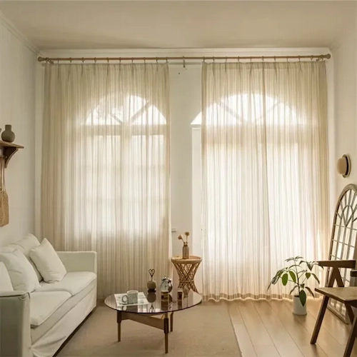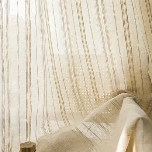 Enhance your interior aesthetic with our vertical striped sheer curtains. These panels feature a subtle, organic texture that adds visual height and sophisticated charm to any window.