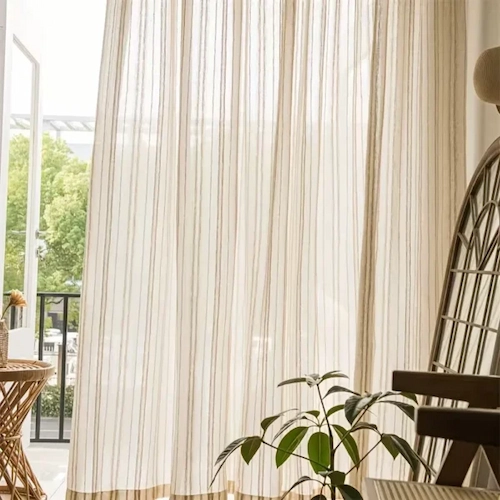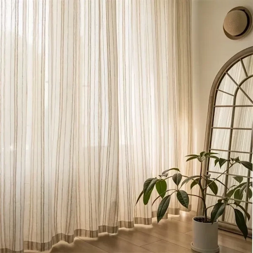 Utilize these vertical striped sheer curtains as elegant room dividers or classic window dressings. They provide a modern, versatile solution for bedrooms, entryways, and contemporary open-plan layouts.