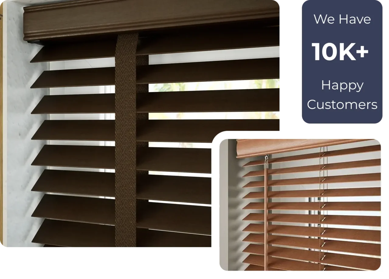 Our wooden Venetian blinds have natural grain textures that soften the interiors with an organic touch. Our sleek and stylish aluminium Venetian blinds fit in minimal spaces. The general finish remains low-key, which makes the windows look organized and appealing.