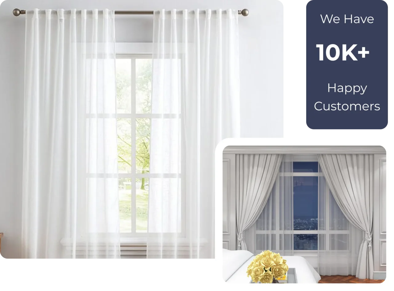 Get in touch with our team and tell us what kind of White Curtains you’ve got. From small windows, big windows with low light or too much sun, whatever the case may be, we help you figure out the curtain style that suits the space best.
